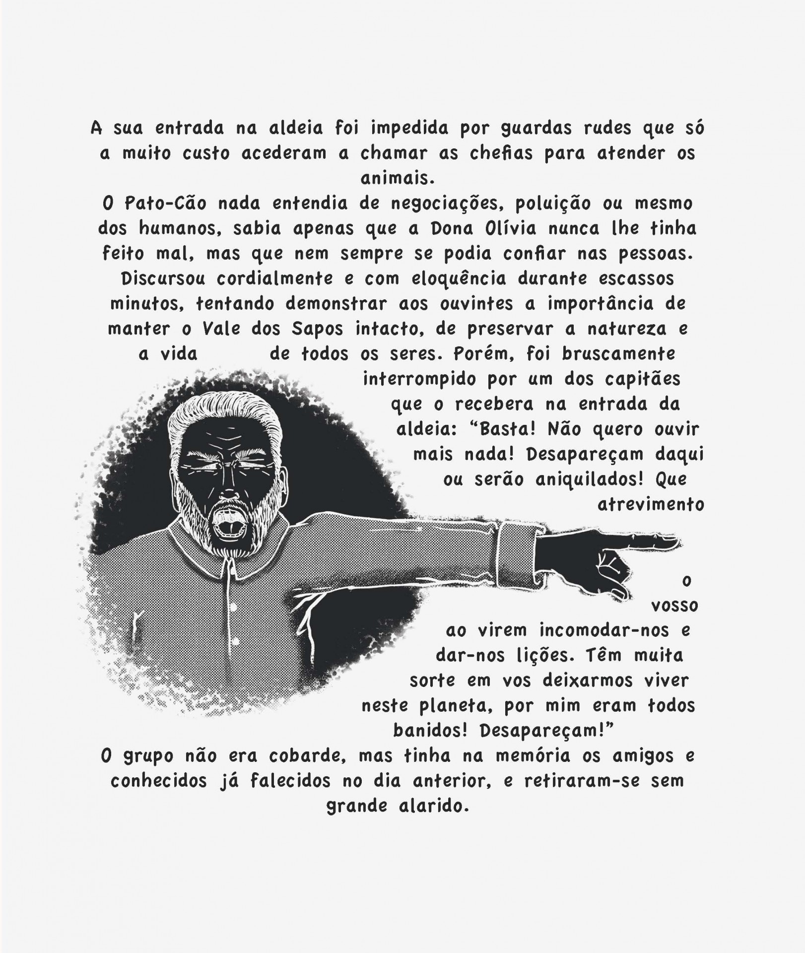 "Iam gostar de conhecer o Pato-Cão. Há quem diga que ainda vagueia pelas águas delicadas que ladeiam as Florestas do Norte, lá onde a noite corre depressa para deixar o Sol cantar uma eternidade. Nunca o procurei. Sinto que o conheço desde que ouvi a sua história pela primeira vez..."